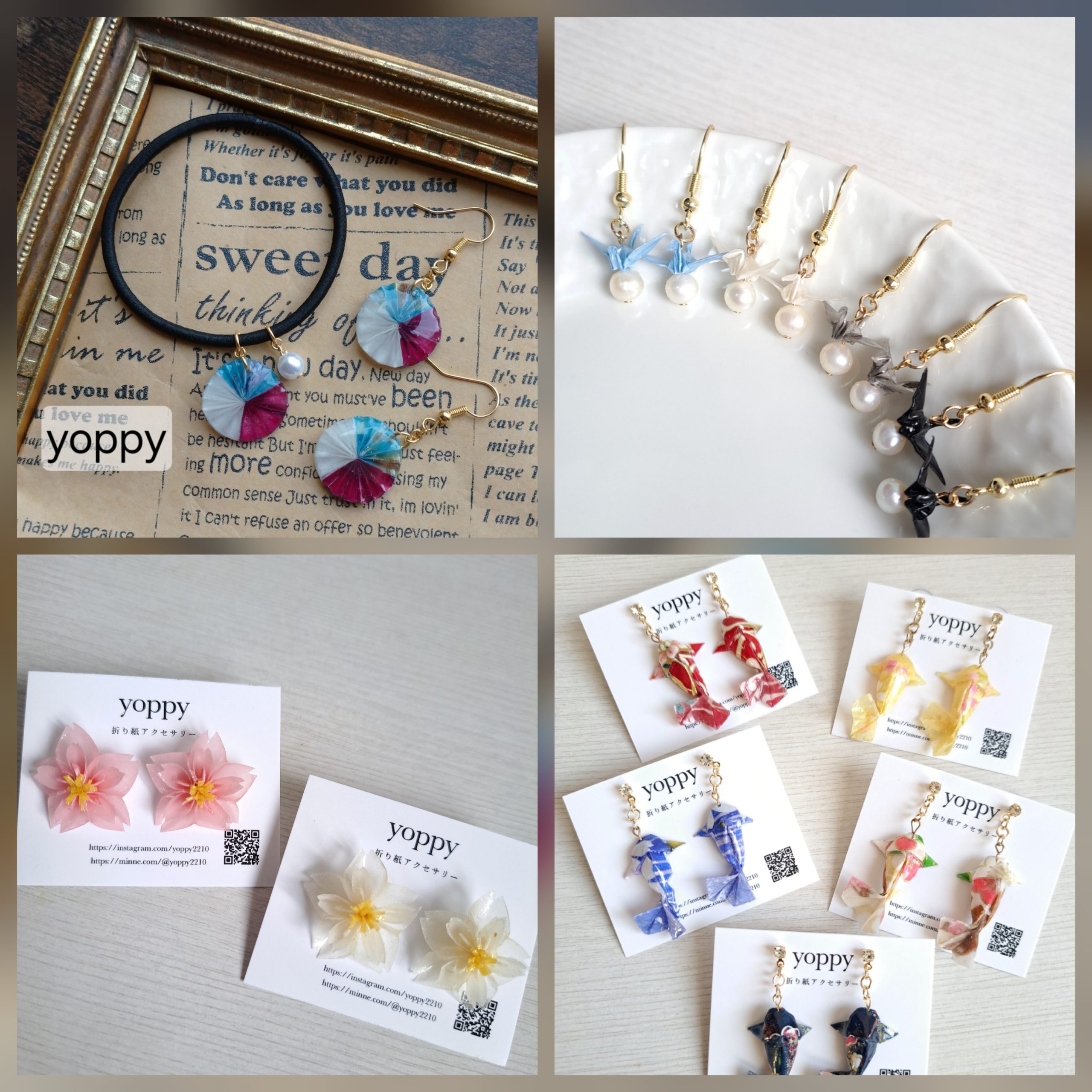 折り紙+レジンでアクセサリーを作っています。